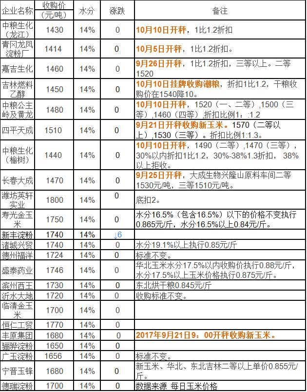 Among them, the mainstream purchase price of new grain in Jinzhou Port is less than 1625 yuan / ton, up 5 yuan / ton compared with yesterday. Heilongjiang grain ranges from 1600 yuan to 1610 yuan per ton, and the mainstream price of tide grain is 1310 yuan per ton. The price of old grain is based on quality. The purchase price of new grain in Bayuquan Port is 1570-1640 yuan / ton, the main flow price of Liaoji grain is 1605-1610 yuan / ton (700unit weight), and the price of Longjiang grain is 1590-1600 yuan / ton. The new grain in Guangdong port is 1830-1850 yuan / ton, up about 10 yuan / ton compared with yesterday.