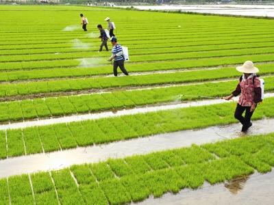 The villagers of Gongma Village are spraying pesticides on rice to help increase the yield.