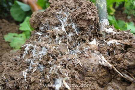 When the disease occurs, the stem near the root will appear irregular disease spots, the epidermis is soft, and then there are many white hyphae, gradually expanding, spreading the whole plant.