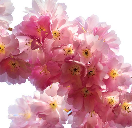 Any of several plants of the subgenus Cherry in the genus Cherry of the Rosaceae family, native to temperate Himalayan regions of the Northern Hemisphere and cultivated worldwide. Cherry trees for deciduous, bark purple brown, flowers alternate, edge awns teeth, dark green surface, shiny. Each flower has three or five flowers, forming umbels, with notches at the apex of the petals, and the colors are mostly white and pink. Flowers bloom in March with or after leaves. Cherry blossoms can be made into sushi, and leaves can also be processed into pickles.