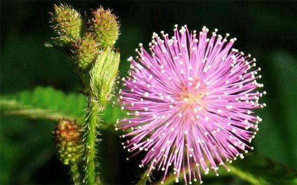 The third characteristic of mimosa is that it is classified as grass in many places because of its strong vitality and messy growth. in fact, it will blossom, just take a look at the picture of mimosa below. Its flowers are pink and its head is spherical in shape like a fluffy ball. Pods will be grafted after flowering, and the fruit is flat and round.