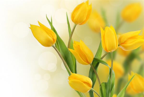 Flower etiquette: because the flower stem of tulip is quite curved, it is appropriate to use a slightly larger white pattern wrapping paper, 4-5 long plants tied into a bunch, the ribbon must be yellow.