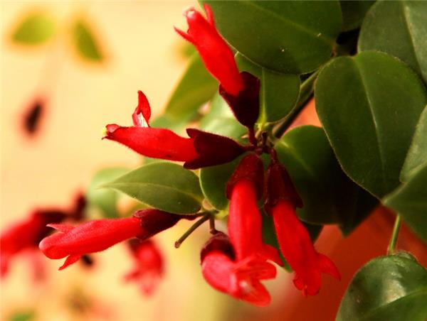 Lipstick flower, also known as flower vine, is a perennial green vine flower belonging to the genus of Manchus of Gesneriaceae. Because it is often viewed as a hanging basin, it is often called Lipstick Chlorophytum. Lipstick is native to Southeast Asia and other places. Its plants are creeping, its branches droop, and its length can reach 30cm~ 100 cm. Its leaves are ovate and opposite, slightly fleshy, 4.5 cm long and 3 cm wide. The leaves are dark green and the back of the leaves is light green. Inflorescences many axillary or terminal, calyx tubular, dark purple tomentose, tubular shell much like lipstick. Corolla tube, bright red, protruding from the calyx, like a "lipstick" from the tube, at room temperature, lipstick flowers can bloom between December and February.