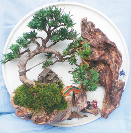 Miniature potted landscape display viewing, has a wide range of performance areas, colorful plants, different shapes of pots, a variety of frames, and the composition of these three changes, free, flexible, changeable. Miniature bonsai is also a comprehensive, multi-dimensional art, as if it is also like a vivid "poetry, painting", in which rhythm, color, lines, etc., give people a sense of beauty,"shape in the painting, God Yu like outside." Miniature bonsai as a carrier of feelings, it broke through the limited space, beyond the constraints of external materials and images, to a great extent induced people's imagination. The artistic charm of miniature bonsai lies in this.